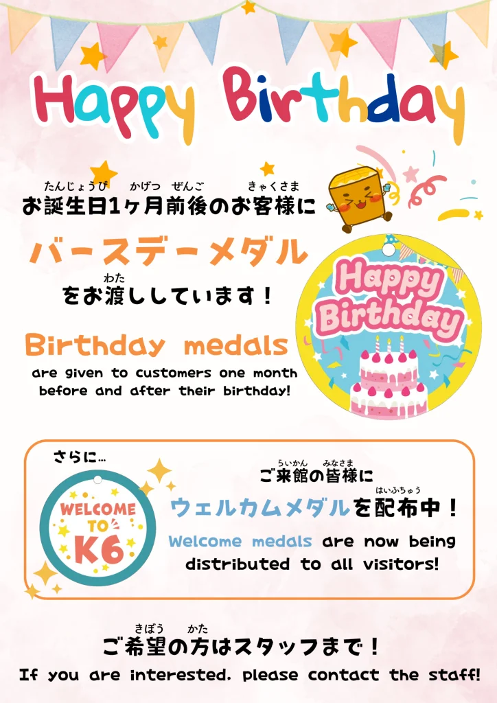 お誕生日から前後1ヶ月にご来館のお客様に、